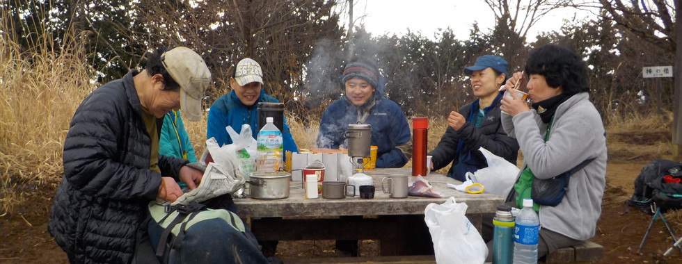 ---白谷沢登山口15:54---さわらびの湯16:16 初めてのリーダーで、時間配分や参加者への指示も出来ず、なんとなくリーダーをやってましたが、気づけば皆さんが色々助けてくれていました。ありがとうございました。今回は6時間30分という長めのコース設定で、階段・急登・急下り・ぬかるみ・沢歩きと沢山の顔を見せてくれる楽しい縦走でした。午前中は天気良く、汗が吹き出していましたが、午後からは曇り、上着を着なくては肌寒かったです。凍結も雪も無く(草むらに少し雪の塊有り)、軽アイゼンは使いませんでした。雪があれば歩きにくい箇所があると思います。この日の為に軽アイゼンを購入してくれたSさん、申し訳ございませんでした。今後の山行で使える事を祈ります。 コースの中で特に印象的だったのが、岩茸石山の登り下りの急さと、少し疲れた下山時に通った白谷沢を下るプチ沢歩きでした。滝も見応え有りました。体調不良で参加出来なかった篠原さんとも一緒に歩きたかったですね。都内近郊でこんなに楽しめたのも、参加していただいたユニークな方々のおかげで、終始笑ってばかりでした。笑い過ぎて腹筋がシックスパックに割れた気がします。強くなれそうです。そして山行中は頻繁に、休暇しなさい!と言わんばかりの立派なベンチが多々有り、もちろん休暇してしまう私達で、休憩の多い山行だったと思います。ただ歩く時はしっかり歩いたので、目標の下山時刻にはまずまずで、お風呂も入れ、帰りのバスにも間に合いました。少し間に合うか不安だったので良かったです。そして、今回1番メインになったお昼休憩には、S久間さん・Y内さんがフランクフルトと家庭用カセットコンロ持参で、パリパリアツアツの焼きたてを振舞ってくれ、皆でほうばりました!冷えた体に染み渡ります。食後のデザートはM田さんのリンゴで、器用に皮を剥いて下さり、お口サッパリ癒されました!お手製のパン焼き網も素敵でした!ご馳走さまでした。タンパク質とビタミンを補給し、お腹パンパンで元気に下山でき、下山してもお腹空かなかったのは初めてです。Mツ井さん、軍畑駅から登山口までの車道を、先頭を歩いて下さりありがとうございました。実はもうすでに迷いそうだったので助かりました。A坂さん、破格のカメラで集合写真撮ってくださりありがとうございました。カメラ持ってないので、欲しくなりました。反省点は多数ありますが、次回リーダーやる時はもう少し成長してるよう頑張ります。本当に皆さんありがとうございました!
