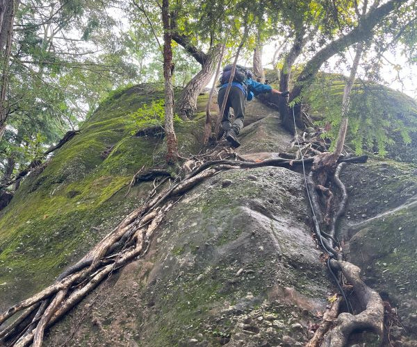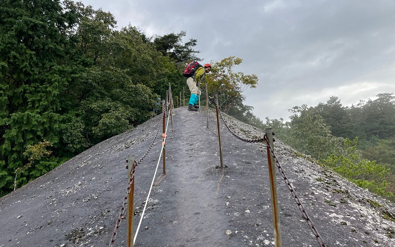 人から聞いた山をネットで見て、遠くもなく、鎖場有りで楽しめそうな山と思い選びました。昭文社の地図、YAMAPともコースタイムが約4時間程度で物足りないかと思っていましたが、釜ノ沢五峰のコースが少し荒れていて、不明瞭な場所が3・4か所、背丈ほどのアシだかヨシの藪でコースが途絶えたかと思いきや、まさかのその藪を掻き分けて進んでいくと道がありました。不明瞭もルート探しの楽しさ訓練。前日からの雨の影響は問題無かったと思いますが、当日2 回ほど短い間雨に降られ、最後の兎岩は滑り台の様でした。